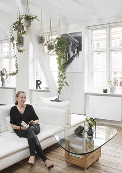 Selve indretningen af den færdigrenoverede lejlighed er præget af Stines passion for sjove genbrugsfund. Genbrug og bæredygtighed betyder meget for parret, og ligesom byggematerialer må møbler gerne have haft en historie.