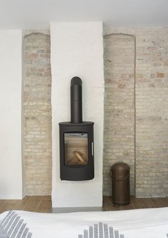 I soveværelset og i stuen skulle der installeres brændeovn, som viste sig at være et større projekt, fordi de ikke måtte benytte de gamle skorstene grundet brandfare. Der skulle derfor trækkes nye stålrør inde i de gamle skorstene samt koordineres med de andre lejligheder, hvor røret skulle gå igennem.