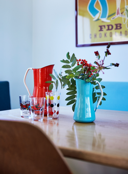 – Vi overtog huset med badesandaler, musefælder og følelsen af fuldstændig 50’er-autenticitet, og vi gled fuldstændig og ubesværet ind i 50’er-rollen. Vi lod os forføre af farver, former og mønstre fra tiden.