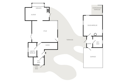 I forlængelse af huset mod øst fik familien nu et køkken, der ligger et par trin hævet over resten af huset.