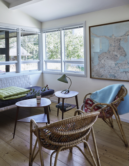 Sommerhus i træ fra 1958, indretning med gode fund.
