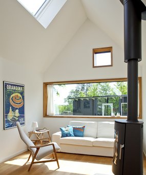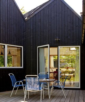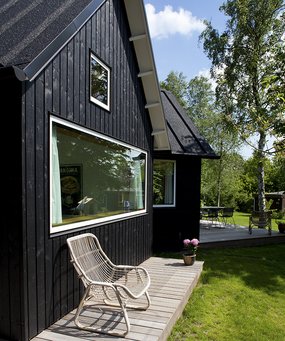 Det sidste er ikke noget problem for Rikke og Carstens hus, for selv om huset har status som sommerhus, er her lige så rart at være, når det er koldest om vinteren. Isoleringen lever op til standarden for nybyggede helårshuse, og med solcelleanlæg og solfangere diskret placeret samt nedlagt jordvarme på grunden er huset næsten selvforsynende med energi.