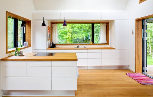 - Jeg er meget glad for, at Carsten og Rikke fulgte min idé, for træet er smukt og bryder de hvide vægge og vi undgår, at det hele bliver for parcelhusagtigt. Netop de mange kig til naturen rundt omkring i huset var vigtigt at få frem her, hvor grunden i sig selv ikke har nogen spektakulær udsigt, fortæller Charles Bessard, da han besøger huset et år efter, at det blev taget i brug.