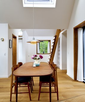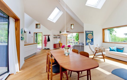 Her er et hus, hvor børn kan lege skjul og kravle op og ned. Et hus, hvor familiemedlemmer i alle aldre kan være sammen - og hver for sig - i det store opholdsrum. Fordi der er flere rum i rummet.