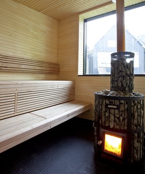 Combi-varmeanlægget med jordvarme, solceller og solfangere er fra Nordic Energy Group. Anlægget er fjernstyret, så familien kan tænde for varmepumpen hjemme fra lejligheden i København og ankomme til et opvarmet sommerhus nogle timer efter. Der er desuden brændeovn i stuen. Solfangere på taget sørger for opvarmning af vand.