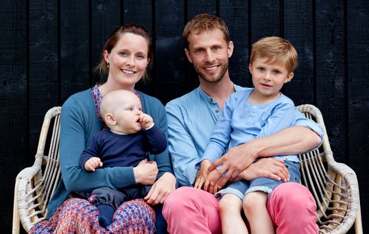 Rikke og Carsten Christiansen med sønnerne August på seks år og Villum på 10 måneder. Foto: Andreas Mikkel Hansen