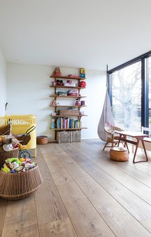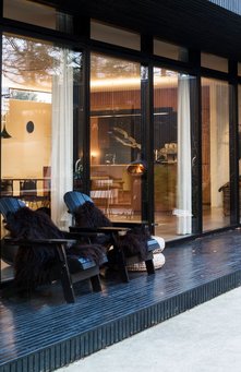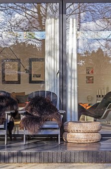 Indefra bliver der også fulgt godt med i årstidernes skiften og dyrelivet. Det kan lade sig gøre takket være store vinduespartier, hvor glasset går til bund, så inde og ude flyder sammen.