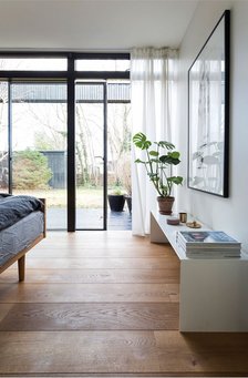 - Måske kan I sove på en anden måde, fx i en alkove. Måske kan I gå direkte ind i opholdsrummet og undvære entréen. Måske kan I tage bad udenfor. Måske kan I bruge nogle anderledes materialer. Måske samles I her foran pejsen og grillen i stedet for tv'et og iPad’en.