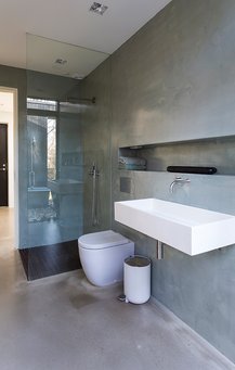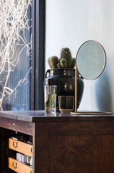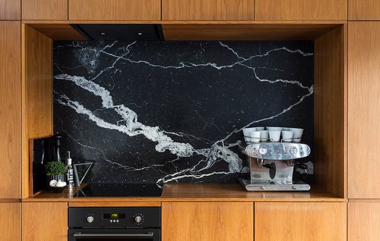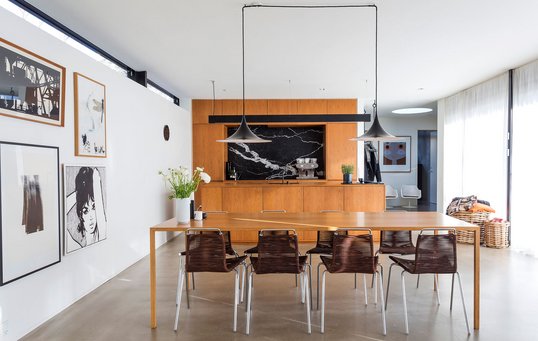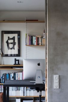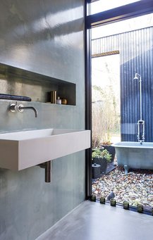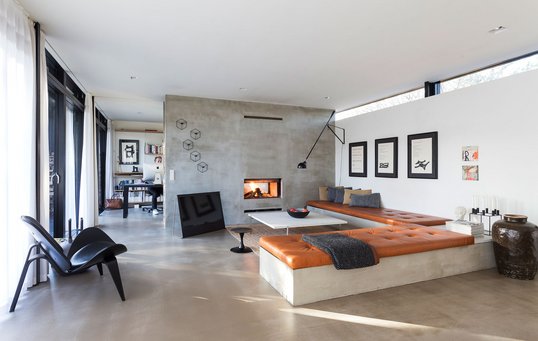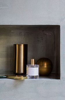 Han fortæller, at han har været meget inspireret af japansk æstetik i sine rene arkitektoniske snit og ved at kombinere ærlige, rå materialer som beton, der er blødt op med egetræ og marmor.