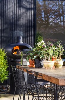 En del af afslapningen består i udendørsaktiviteter, som den store gårdterrasse indbyder til. Her er der bålplads og en pizzaovn til at kunne lave snobrød og popcorn og komme af med afskårne grene og kviste.