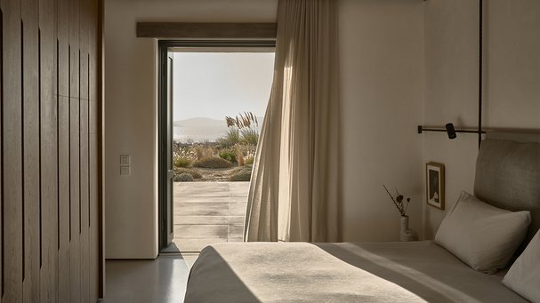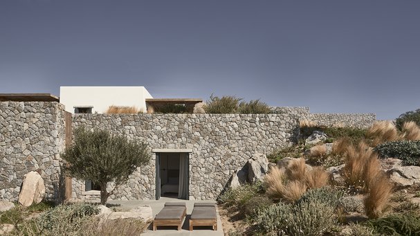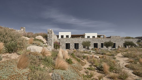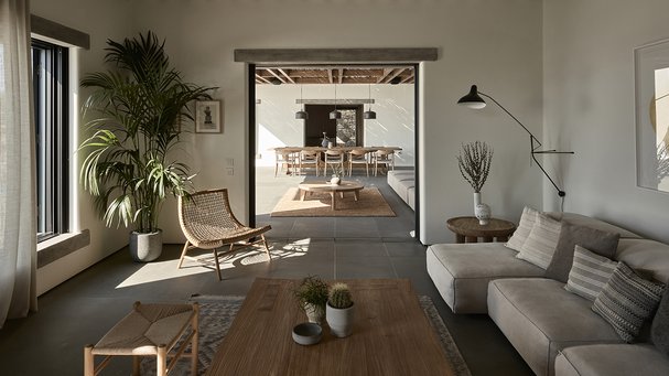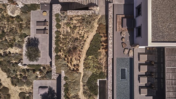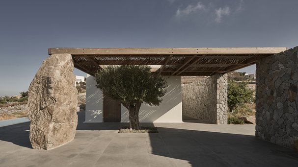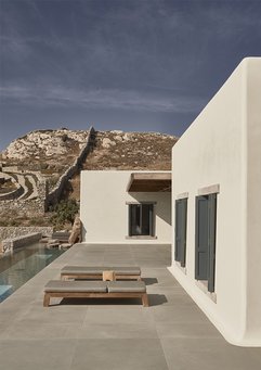 – Villaen udtrykker på én gang Kykladernes traditionelle byggestil med brugen af sten, hvidvaskede flader og runde mure og en moderne tilgang til arkitektur og design med husets lange, lige forløb.