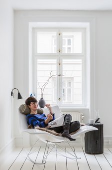 - For mig er det ren afslapning og meditation at indrette mit hjem. Jeg forsøger også at vise min personlighed gennem min indretning – og jeg er til rene linjer og rum som ikke støjer så meget. Som selvstændig lever jeg i et højt gear med mange projekter, ansvar og forpligtelser. Derfor er det rart med et hjem i en lys og simpel energi, hvor jeg bare kan være.