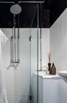 - For mig ligger helheden i detaljen. Indretningen må gerne have lidt kant og finesser – og det synes jeg, de sorte linjer i gulvet giver. Håndværksmæssigt behøver alting ikke at være perfekt, når du er gør-det-selv mand/kvinde. Til gengæld kan gode velovervejede detaljer flytte fokus fra eventuelle småfejl og mangler.