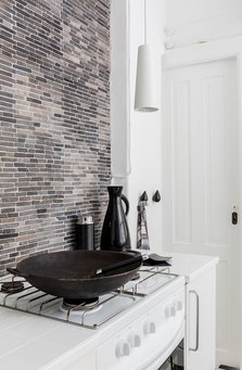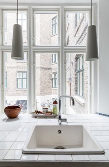 - Det er desværre en lejelejelighed, så det gælder om at finde opgraderende løsninger, der kan klares på et lille budget. Men med maling kommer man altså langt, siger Helle, der også har fornyet køkkenet med mosaikker og tapet og selv lagt klinker på køkkenbordet. Alt sammen nogle enkle metoder, der har opgraderet de gamle rammer uden at koste en bondegård.