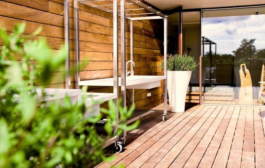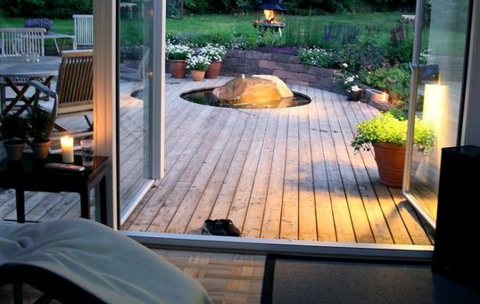 - Den kan opleves som en forlængelse af huset, hvis man har samme type træ indenfor.
