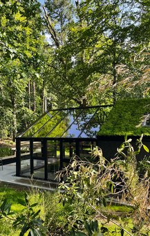 Hvis Tarzan skulle vinke farvel til livet i junglen og sove andre steder end i sammenknyttede lianer, ville han sikkert vælge at bo i ”The Green House” eller ”De Kas”, som boligen hedder på hollandsk. Her kan han både holde varmen om vinteren og samtidig føle sig som en del af den omgivende skov, da mere end halvdelen af facaden er glas, og det samme er en stor del af taget.