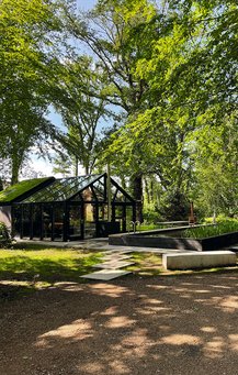 Tilsammen udgør de tre rum boligens mere lukkede del med en facade beklædt med sorte mursten og sedumtag. Ud over at give frit udsyn sørger den store mængde glas også for at opvarme huset på solskinsdage.
