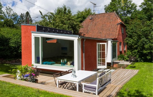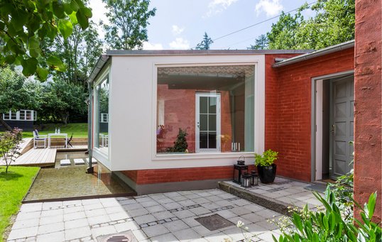 - I starten arbejdede vi med en klassisk forlængelse af det oprindelige hus, men derved ville vi få de samme rum med de samme vindueshuller og begrænsninger. Vi valgte derfor at gå moderne til værks, for når man nu som arkitekt bygger til sig selv, bør man også turde vove noget, fortæller Rasmus Frimer Andersen, da Videncentret Bolius talte med ham i 2016.