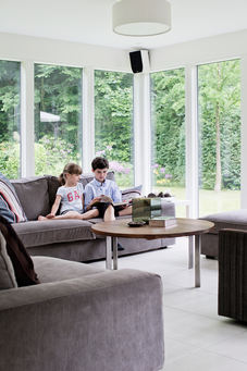 Den nye stue mod haven er blevet et sted, hvor familien samles og taler sammen, slapper af, eller læser.