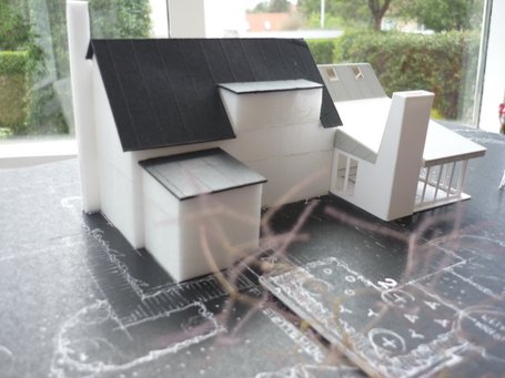 Selv om tegninger og visualiseringer kan vise meget, vælger Tom Mose Petersen som regel ved større byggesager at bygge en lille model. Det gjorde han også med her, og familien har stadig modellen som en lille souvenir, og den har gennem årene været igennem en masse barnehænder.