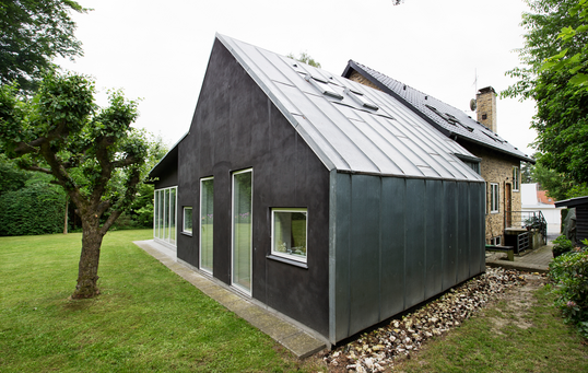 - Vi var ikke interesseret i, at tilbygningen blot skulle efterligne det gamle hus. Den måtte godt være anderledes og moderne, siger Annette Krogh.