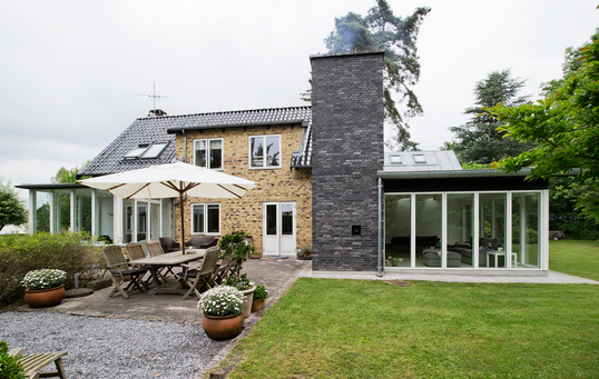 Familien Kroghs byggeprojekt handlede i første omgang om at få bygget en ekstra stue og to teenageværelser, men det arkitekt og bygherrer kom til at bruge mest tid på var den høje skorsten, som i den grad er endt med at blive husets signatur.