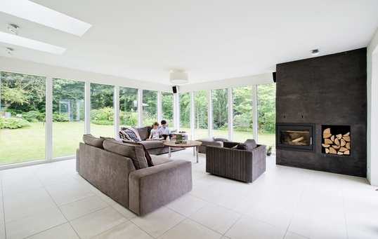 Den nye stue mod haven er blevet et sted, hvor familien samles og taler sammen, slapper af, eller læser. Foto: Christina Kayser Onsgaard.