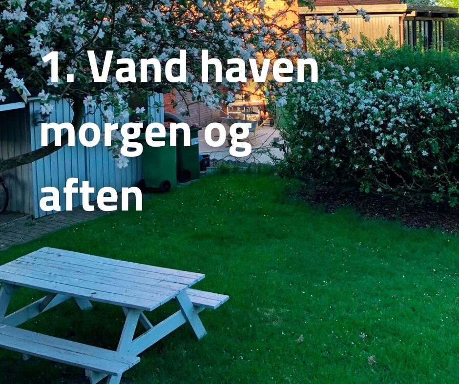 - Vand morgen eller aften, hvor der er mindst fordampning.