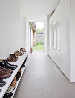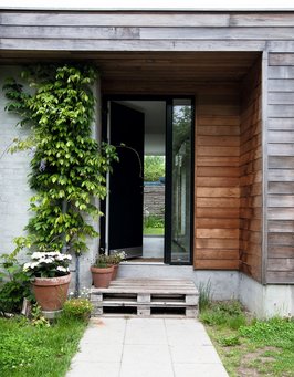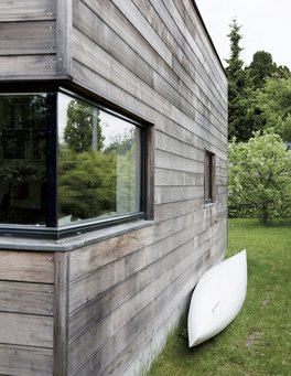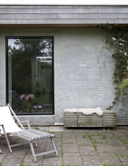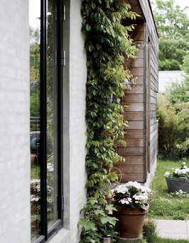 - Rasmus (arkitekten, red.) var god til at skabe sammenhæng og udnytte alle de kroge og løsninger, som huset havde. Fx at det oprindelige 60-er-udhæng kunne udnyttes til at lave de her udendørs opbevaringsrum, når facaden blev beklædt med cedertræet. Jeg ville egentligt gerne have haft det helt væk, men det ville have været alt for dyrt, og Rasmus kunne se, at proportionerne i huset passede til dem. Og det her fungerer både praktisk og er pænt, siger Anne Solmer, der er grafisk designer og meget optaget af, at huset kom til at hænge sammen æstetisk.