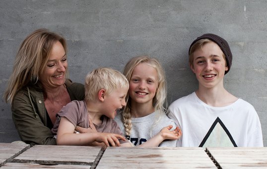 Anne Solmer sammen med familiens tre børn: Mattis på 4, Sia Thit på 11 og Kalle på 14 år. Foto: Christina Kayser Onsgaard