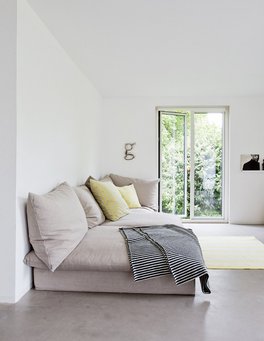 - Jeg var helt nede i farvetonerne på træet og pudsen, da vi nåede til den del. Hvordan det ville se ud op mod de nye vinduesrammer, om de skulle være sorte eller grå. Hvordan lyset ville spille i cementgulvet, og hvilken nuance det skulle have. Det kunne Thomas godt blive rigtig træt af at høre om, og så var det godt at have arkitekten at tale med, siger Anne.
