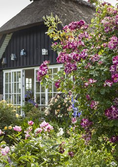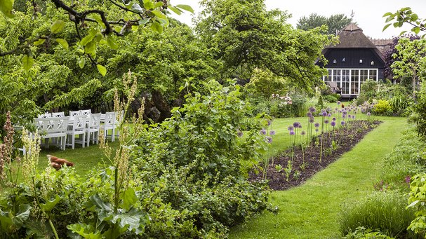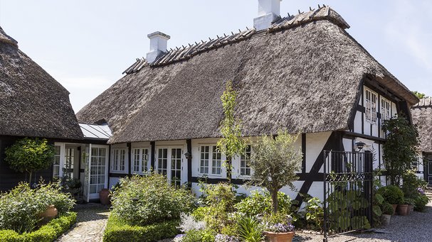 Den flotte Troensehave spiller godt sammen med det gamle bindingsværkshus.