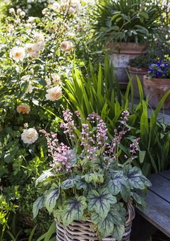 Helle Troelsen sætter altid ord på sine blomsterbede. I mormorbedet vokser der fx planter inspireret af hendes egen mormor, som gav hende interessen for blomster og have. Her ses fx bonderoser, fingerbøl, ridderspore og selvfølgelig roser. Tøsebedet har fået sit navn, fordi farveskalaen her er overvejende lyserød, mens blomsterne i det maskuline bed er mørke, brændte farver og purpur.