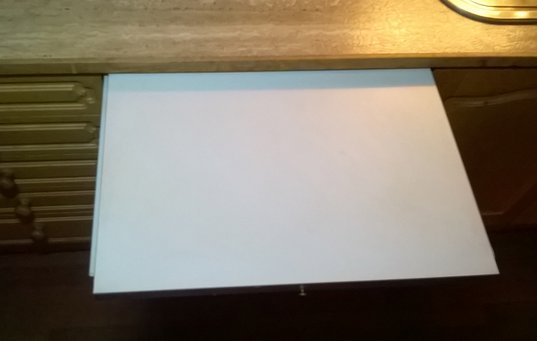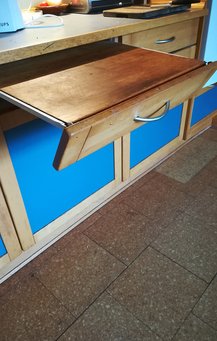 En udtræksplade kunne placeres både over skuffer og skab i køkkenet og blev brugt som et ekstra skærebræt i et måske trangt køkken. Foto: Agnes Sandhåland