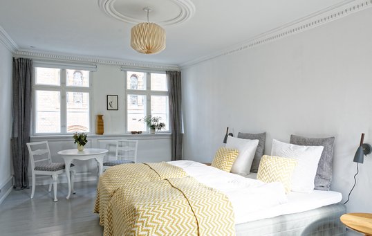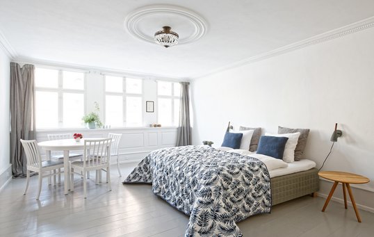 - Vær diskret med farvevalget på væggene. Så snart man har valgt et tapet eller en farve, styrer det resten af indretningen.