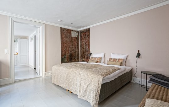 – Jeg havde forestillet mig en bolig med bed and breakfast, som mange går og drømmer om. Så var det, at den gamle ejendom i byens gågade med side- og baghus kom til salg, efter at en ældre forretningsmand for længst havde lukket sin vinhandel. Han havde troet, at han kunne rive ejendommen ned og bygge nye lejligheder. Men en fredning satte en stopper for de planer, og så gik det hele i stå, og stedet i forfald, fortæller Ulla, da Videncentret Bolius talte med hende i 2017.