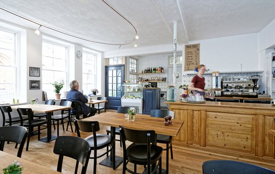 Tid: Overtager huset januar 2013. Marts 2014 er baghuset klar. Hotel og café åbnede i sommeren 2016.