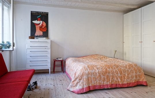 Da parrets hjem i baghuset er relativt kompakt, har de valgt lette møbler og ikke for mange af dem. Indretningen er i det hele taget enkel med plakatklassikere, malerier og keramik, som parret har samlet gennem årene og fundet på loppemarkeder og andre steder. Det har været vigtigt for dem at være omhyggelig med den private del af ejendommen, så ikke alt går op i arbejde og forretning. At tingene er rengøringsvenlige og praktiske har for dem været lige så vigtigt som det æstetiske.
