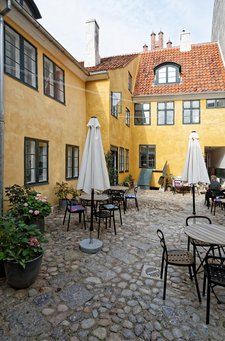 Her er lyse, men ikke særlig højloftede rum med synlige loftbjælker og brede fyrreplanker på gulvene og lys ind gennem sprossevinduer fra to sider, selvom huset er et baghus. Med stedet som en tryg base kunne de renovere gårdhave samt side- og forhus som i dag rummer hotel og café. I gæstehuset er der i alt seks dobbeltværelser, fire med tilhørende køkkener. På kvisten findes et større lokale med egetræsgulve og fritliggende bjælker, som lejes ud til familiefester, konferencer m.m., og hvor maden bliver leveret fra caféens køkken.